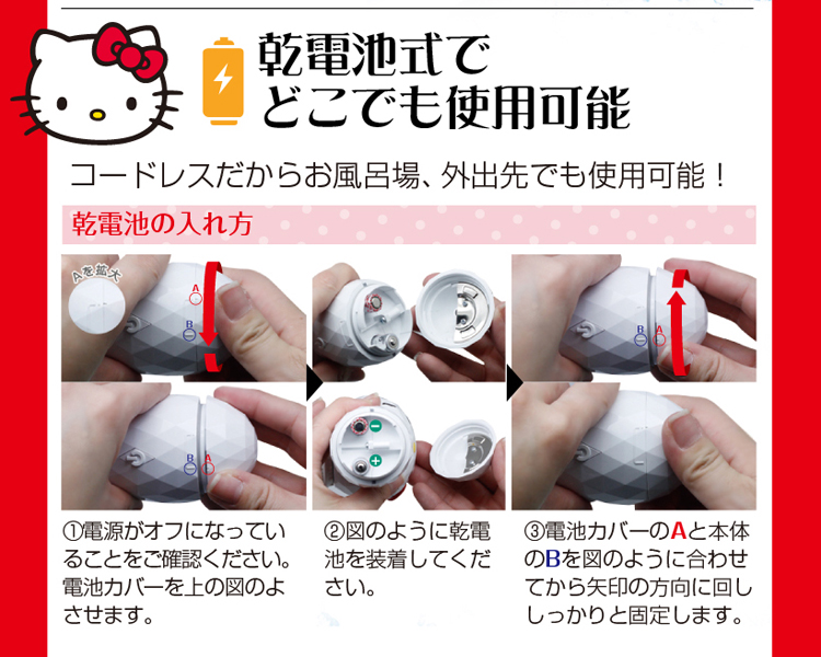 コードレスでお風呂場、外出先でも使用可能!(単2電池2本使用:電池別売り)